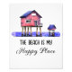 Um poster com uma casa de praia em estilos de aquarela, com a citação, "A Praia é o Meu Lugar Feliz." Conteúdo genérico da arte Ai
