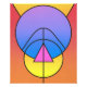 Pure joy in geometric form. Clean circles and a bold triangle meet an explosion of color—electric purple, deep blue, vibrant pink, sunny yellow, and fiery orange. No clutter, just pure shapes and fearless color that make you feel alive. For those who believe less is more, but more color is everything.