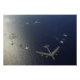 Um avião da Força Aérea B-52 dos EUA dirige uma formação de aviões com caças de ataque.