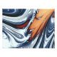 Um design abstrato de arte de girar a água do rio em azul, preto, laranja e branco.