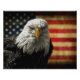 Pintura a óleo de uma majestosa águia careca contra uma foto de uma batalha angustiada bandeira americana. Imagem patriótica excelente.
