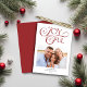Cartão com fotos de Natal animado moderno e alegre, com tipografia de tendências e vermelho de amora de na moda de inverno. **O nosso documento sobre o ORÇAMENTO é mais pequeno e delicado, mas ainda é bonito!** Para uma comparação de tipos de papel, veja o nosso vídeo aqui: https://youtu.be/G0F9Am5HPD4 Se precisar de assistência ou de itens correspondentes, contacte-nos em cedarandstring@gmail.com.