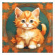 Foto Impressão com um gato laranja no estilo de Alphonse Mucha! Este gatinho adorável com olhos verdes é enquadrado pelas folhas do outono. Um presente maravilhoso para amantes de gatos e colecionadores de Art Nouveau!