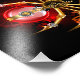 Aranha mecânica, com pá-pá de ouro, engrenagens de latão e uma lâmpada de vidro vermelha sobre fundo preto. Estilo Steampunk.