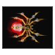 Aranha mecânica steampunk com engrenagens de ouro, latão e uma lâmpada de vidro vermelho em um fundo preto. Estilo steampunk.