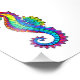 Articulação artificial, brilhante, arco-íris, cavalo de mar poligonal sobre fundo branco. Tatuagem brilhante.