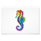 Articulação artificial, brilhante, arco-íris, cavalo de mar poligonal sobre fundo branco. Tatuagem brilhante.