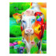 Esta trabalho de arte digital atraente apresenta uma vaca psicodélica em cores vibrantes e surreais, contra um campo verde inspirado na fantasia. Com matizes brilhantes e texturas sonoras, ela combina o mundo natural com uma abstração imaginativa — perfeita para fãs de animais coloridos, surrealismo e arte mimada de temas fazendas
