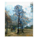 Um design de arte de outono de uma árvore de abetos e uma pessoa desfrutando de paz e tranquilidade.