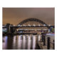 Fotografia a cores de longa exposição do Newcastle Quayside, com a famosa ponte Tyne. Atrás da ponte Tyne estão a Ponte Swing de William Armstrong, a Ponte de Alto Nível de Robert Stephenson e a ponte da Rainha Elizabeth II.