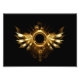 Asas mecânicas brilhantes, com engrenagens e faixa redonda de latão. Steampunk