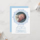 Clássico e elegante anúncio de nascimento com coroa elegante azul-bebê. Um elegante modelo de anúncio de fotos de bebês ideal para fotos de recém-nascidos. Com azul claro e azul ardente com simples esquema floral verde moderno. Um anúncio de fotografia de um bebê doce.