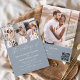 Busto Azul O Casamento do Código QR Elegante Moderno, Quatro (4) Colagem de Fotos e Grande Convite Minimalista de Casamento de Data. Os cartões de convite para o casamento contêm uma tipografia moderna que é elegante, simples e moderna para usar depois de você celebrar o dia de casamento simples e minimalista.