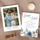 Anuncie seu grande dia com este Simple Dusty Blue Photo Wedding Salve o Cartão de Data, projetado para casais que amam minimalismo e elegância. Apresentando um layout limpo com tons azuis suaves e espaço para sua foto favorita, este cartão é perfeito para um tema romântico de casamento ou um estilo clássico de casamento azul. O design do eterno e as opções personalizáveis o tornam ideal para compartilhar sua história de amor e garantir que seus hóspedes salvem a data de sua celebração especial.