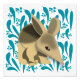 O quarto da série de animais Baby australianos, esta impressão apresenta um bebê bilby contra um fundo verde azul de folhas de eucalipto e nozes.