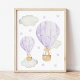 Adicione os retoques finais ao berçário do seu bebê ou ao quarto do seu filho com estas impressões de arte lindas! Design apresenta balão de ar quente roxo, urso, coelho, lua, nuvens e estrelas.