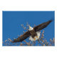 Uma magnífica águia careca, fotografada enquanto salta para o ar de um membro da árvore.