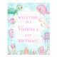 Baleia Rosa Sob o primeiro aniversario do Mar Sinal de Boas-vindas Sob o mar temia qualquer sinal de boas-vindas de aniversário que apresentasse várias criaturas marinhas como uma baleia rosa, tartaruga marinha verde, peixe gelado e muito mais. Ideal para uma festa de aniversário temática sob o mar durante várias idades.