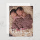 Personalizado com sua foto gêmea na frente, mensagem especial e dentro de informação de nascimento neste obrigado vertical plano, o cartão de anúncio de nascimento. Este design usa uma fonte elegante desenhada à mão para um toque de sofisticação. Expresse sua entusiasmo de anunciar o nascimento de seus filhos e envie sua gratidão ao mesmo tempo. As palavras "Obrigado" estão em uma fonte branca moderna.