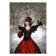 Renderização digital em 3D de uma bela bruxa em um fundo mágico do castelo de conto de fadas
