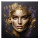 Um retrato de uma bela mulher trouxe à vida com um efeito realista. A imagem é gravada a partir de granito preto texturizado, e enfeitada com linhas de ouro abstrato, roxo escuro e elementos de ouro rodeados em seu rosto em um abraço artístico, criando uma composição cativante e única.