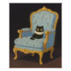 A whimsical black cat lounges peacefully on a vintage blue floral armchair, blending dark elegance with dreamy charm in Ghibli-inspired style. Perfect for cat lovers and fans of cozy, fantasy decor, this poster brings storytelling into your space.