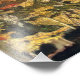 Uma imagem pintada das árvores durante o outono, no estilo artístico do impressão de Tinta Woodblock.