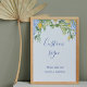 Um sinal de mesa de casamento mediterrânico boêmico azul pastel feito à mão. Clique no botão personalizado para inserir todos os seus detalhes. Mais designs como esta podem ser vistas na coleção da minha loja.