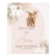 Boho Floral Arch Cow Chá de fraldas Calf Sinal de Boho Sinal de Boari - Bem-vindo ao chá de fraldas Sinal Safari - sinal de boas-vindas para uma menina com uma vaca em terras altas e bezerro num arco cor-de-rosa. Esta placa de boas-vindas do chá de fraldas temático da vaca também apresenta alguns arranjos florais cor-de-rosa-boho com grama-pampas.