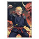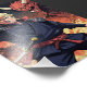 Nessa imagem eletrizante, o presidente Trump vestido de uniforme azul escuro com sotaques vermelhos vibrantes, está pronto para combate. Com um cinto vermelho significando sua proeza, ele atinge uma pose poderosa, punho cercado e olhar fixo. Atrás dele, um gigantesco dragão vermelho com chifres ameaçadores e dentes afiados emerge de uma tempestade de chamas e fumaça. Uma criatura menor parecida com dragão esconde-se ao fundo, aumentando a atmosfera intensa. A cena exude uma sensação de batalha iminente, com elementos de fantasia e proeza marcial se misturando sem parar para criar um visual dinâmico e emocionante.