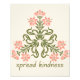 a ilustração das flores cor-de-rosa-safra com texto motivacional verde diz "Spread gentil", este buquê floral design é para amantes de flores e pessoas amáveis.
