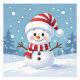 Boneco de neve feliz com chapéu e cachecol de listras vermelhas e brancas.