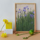 Lindo sua casa com esta impressão de fotos de bonito, azuis irrises e sua luxuosa folhagem verde crescendo contra uma parede clara de stucco. Uma bela imagem floral! Selecione o tamanho do impressão conforme desejado. NOTA: impressão de foto mostrada com estrutura apenas para fins de exibição.