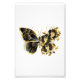 Borboleta de flores Dourada com orquídea de joias pretas, decorada com folhas de ouro sobre fundo branco.