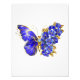 Borboleta de flores cinza, azul, safira, espumante com asa decorada com flores preciosos azuis com folhas de ouro sobre fundo branco.