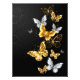 Borboletas Douradas, joias e brancas sobre fundo preto. Borboleta ouro.