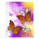 Laranja, borboletas monarcas detalhadas sobre luz, roxo, pitoresco, fundo pintado.
