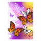 Laranja, borboletas monarcas detalhadas sobre luz, roxo, pitoresco, fundo pintado.