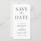 Anuncie sua data de casamento com esta na moda, foto moderna, salve o cartão de data. O design apresenta "Save the Date" (Salvar a data) na parte frontal em fontes pretas de script e serif com fundo branco. Personalize o minimalista para salvar o anúncio de data adicionando seus nomes, data e local do casamento. A placa reverte para exibir sua foto favorita do noivado. A simples salvação do anúncio de data é perfeita para qualquer tema de casamento.
