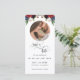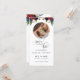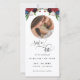 Aprecie seus convidados com esta foto elegante Salve o marcador de data. Design com um fino floral de cor d'água pintado manualmente em tons pincéis, burlões, azuis e verdes, contendo sua foto em um atraente quadro de cobertura circular. A frase "Salve a Data" em caligrafia escrita à mão moderna. Área central superior livre caso você queira ter a opção de bater um todo, e embelezar um marcador com uma fita decorativa. Adicione seus nomes, data, local e quaisquer outras informações extras que você quiser. Voltar com detalhes florais de canto incluindo o logotipo de "nova data" de na moda com a frase "salvar a data" na caligrafia moderna, sua data, noiva e nomes de noivas.
