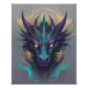 Esta pintura apresenta uma impressionante representação da cabeça de um dragão místico e feroz. O dragão é renderizado em estilo realista em cor lacrimogênea, dourada e roxa e tem um aspecto poderoso e feroz. A pintura tem uma sensação de mistério e intrigação.