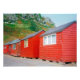 Uma fileira de galpões vermelhos na ilha de Jersey, Ilhas do Canal.