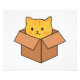 Gato de laranja giro e engraçado sentado dentro cardboard sorrindo