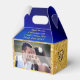 FOTO, Caixas Personalizadas para Presentes de Casamento, Aniversário ou QUALQUER OCASIÃO. Tons de Azul Real e Azul Marinho e um lindo Design com Brilho Dourado com Corações de Diamante Dourados adornam estas caixas de presentes de casamento. Coloque seus presentes de casamento nas incríveis caixas azuis e douradas para adicionar aos enfeites da mesa de casamento. O design das caixas personalizadas para presentes de casamento pode ser transferido para outros suprimentos, enfeites, presentes e muito mais para a festa de recepção de casamento personalizada.