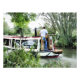 Um design de arte de um homem dirigindo seu barco estreito ao longo do canal. Os barcos do Canal, conhecidos no Reino Unido como barcos estreitos, foram originalmente utilizados para transportar mercadorias em todo o país. Atualmente, são utilizadas principalmente para o lazer e atraem pessoas de todo o mundo para usufruir do nosso campo rural. Estes barcos parecem muito bonito com as suas cabanas de cor brilhante, tradicionalmente azuis, vermelhas ou verdes. Flores e designs de castelos também adoram os barcos mais tradicionais.
