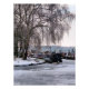Uma cena fotográfica de neve de inverno com barcos estreitos no canal congelado.