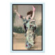 impressão de fotos de 9,5" x 10" com uma imagem vintage de um adorável dançarino de câncer preto, azul e rosa segurando uma perna em azul-claro com uma borda preta. Veja toda a coleção de Impressão de Foto de Cancan no DECOR | Seção Impressões de fotos.