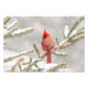 Um cardeal macho empoleirado em um pinheiro coberto de neve em um dia frio de inverno, enquanto nevava. Esta imagem foi tirada por Debbie Quick of Debs Creative Images. Para ver mais fotografias por Debbie, visite o seu site: www.debscreativeimages.com