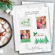 Entrega Especial de Quente Deseja o cartão de Natal com selos de correio antigos, personalizados com 2 das suas fotos favoritas e dentro de saudação personalizada. A design apresenta 4 carimbos, escritos com a letra natalícia (Feliz e Brilho, Deixe nevar e Feliz Natal) e um padrão de fundo de árvores de natal de pinheiros rabiscados numa paleta de cores gerais de verde e cinza.