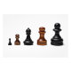 Uma linha de cinco peões de xadrez de tamanhos diferentes, do menor à esquerda para o maior à direita, como símbolo do crescimento da carreira empresarial. Isolado sobre o fundo branco.